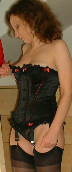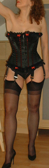 Bei dem Korsett handelt es sich um ein Axford D.24 in schwarzem Satin, Schnürweite 61 cm.