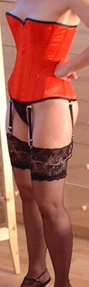 Bei dem Korsett handelt es sich um ein Vollers 1905U in rotem Satin, Schnürweite 61 cm.